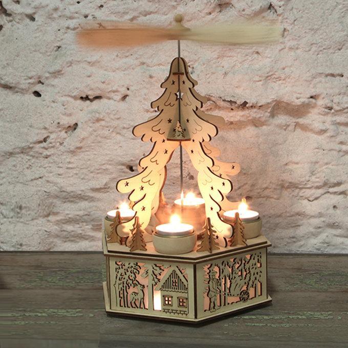 Duży drewniany wiatrak z motywami leśnymi na 4 podgrzewacze (tealight),