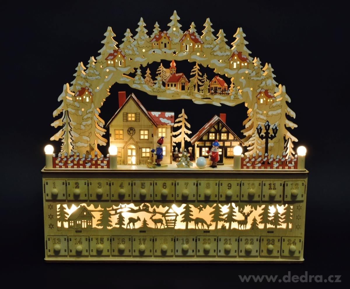 Drewniany kalendarz adwentowy z oświetleniem LED
