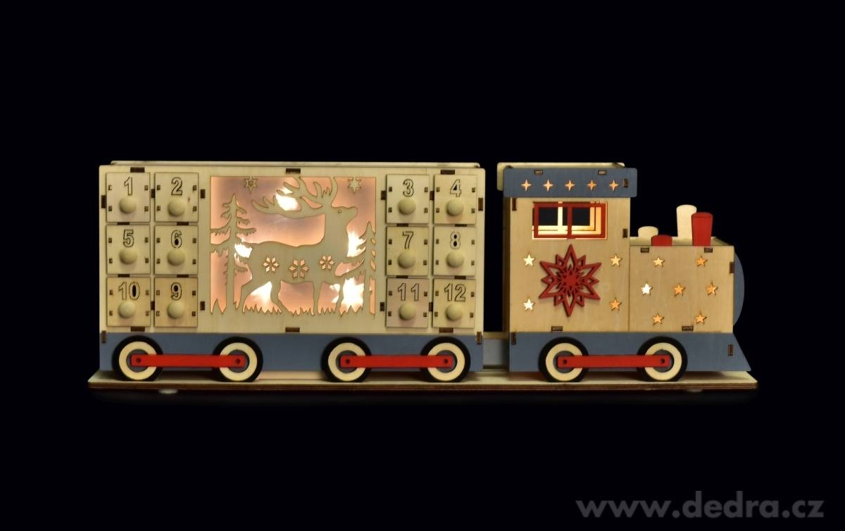 Drewniany kalendarz adwentowy lokomotywa, dwustronny,