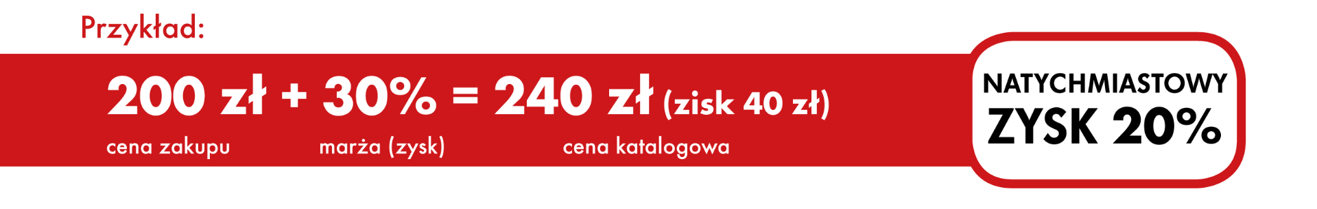 Jeżeli doliczysz do ceny zakupu 20% to otrzymasz cenę z katalogu. Twój zysk to 20%.